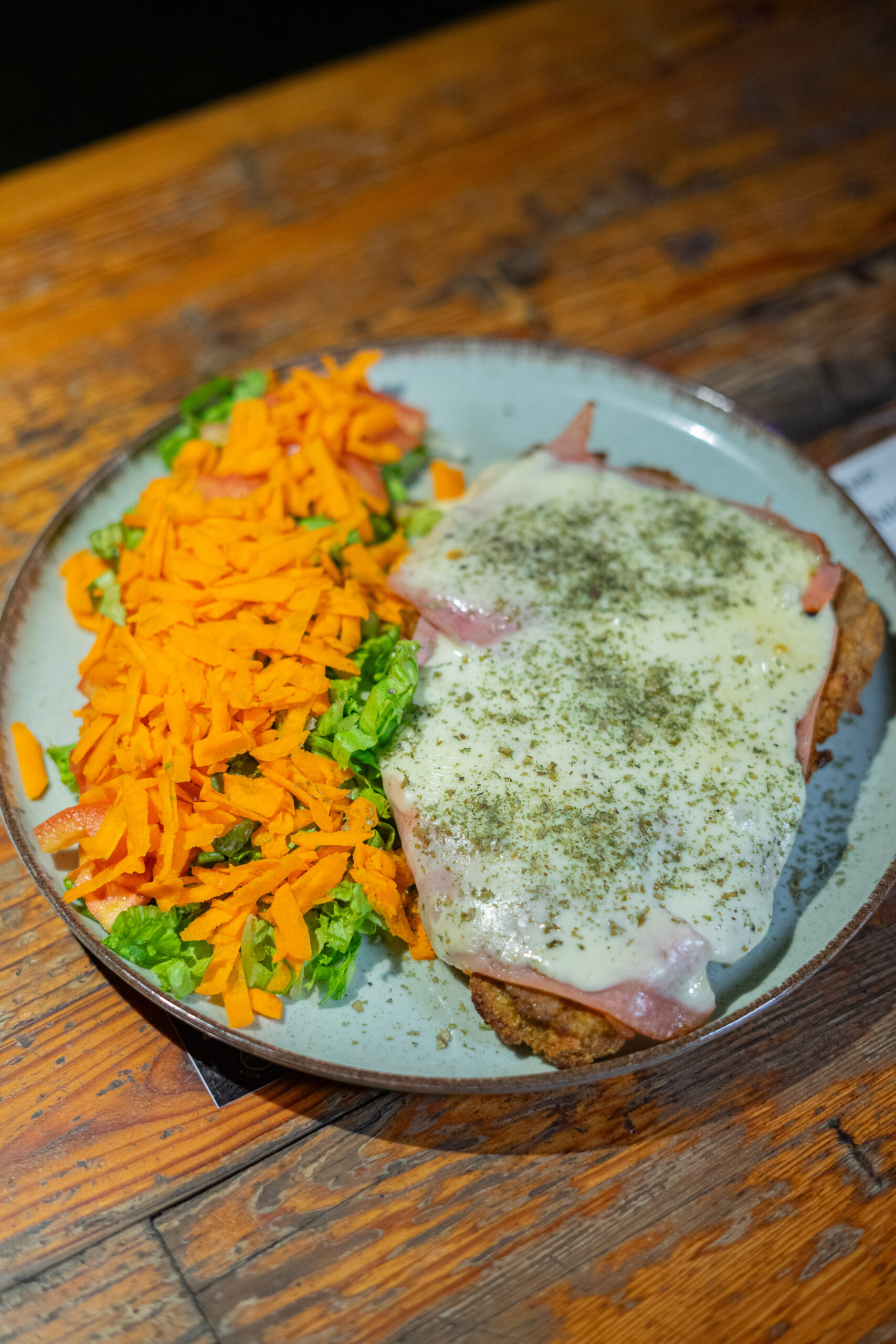 Jamón crudo, queso tybo, rúcula, tomate deshidratado aceite de oliva De milanesa