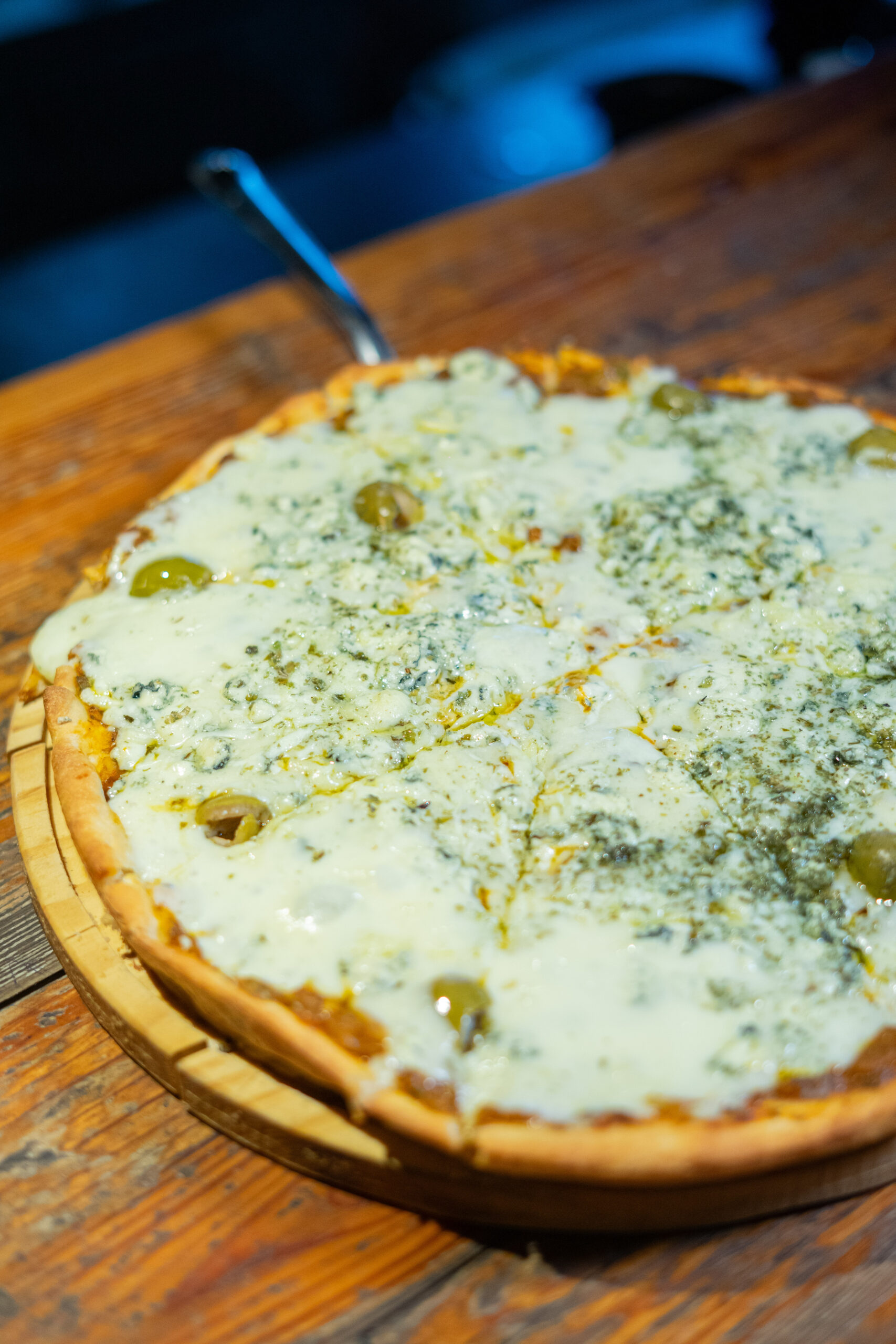 Salsa, queso mozzarella, cremoso, roquefort y parmesano