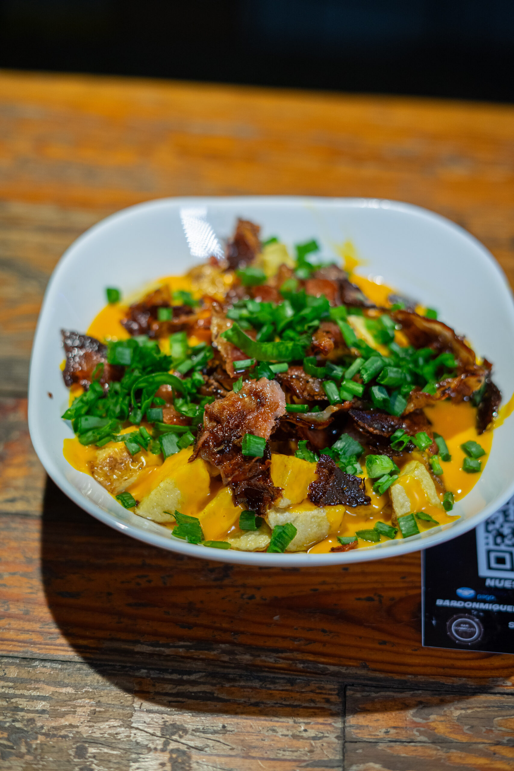 Papas a la barbacoa, chorizo y verdeo