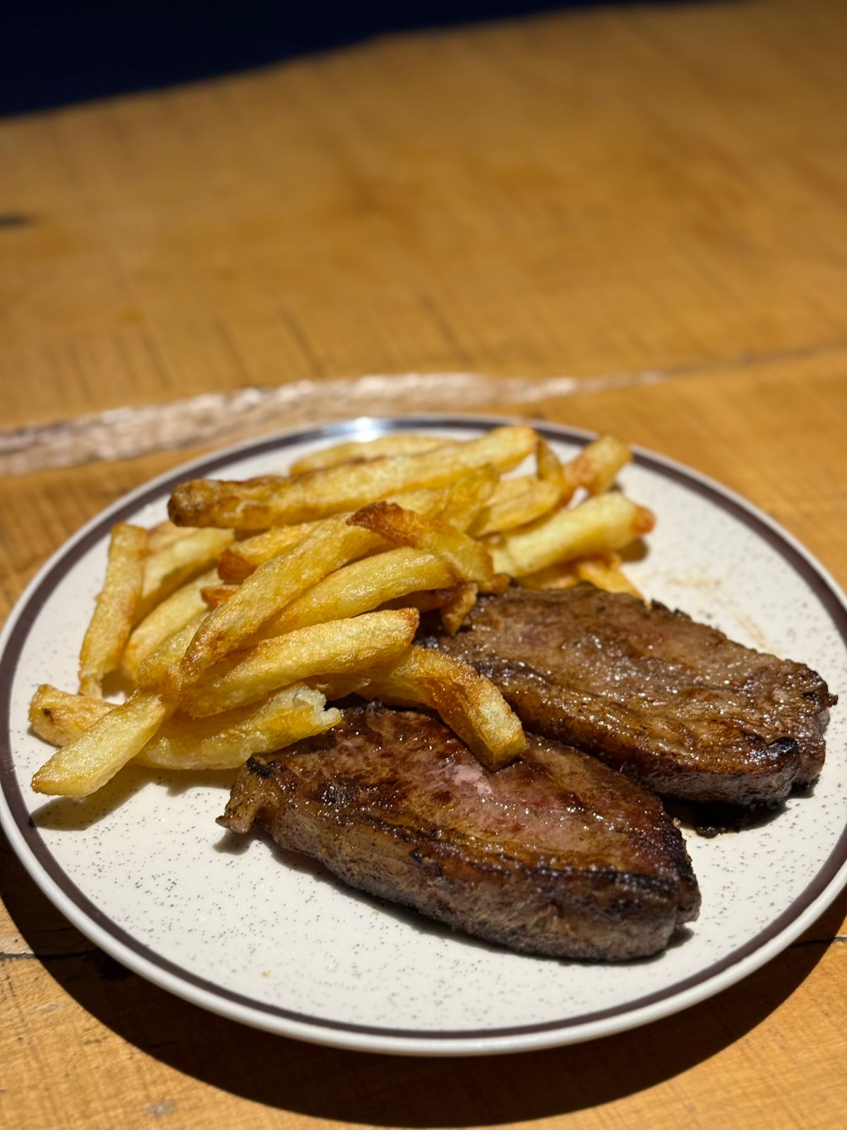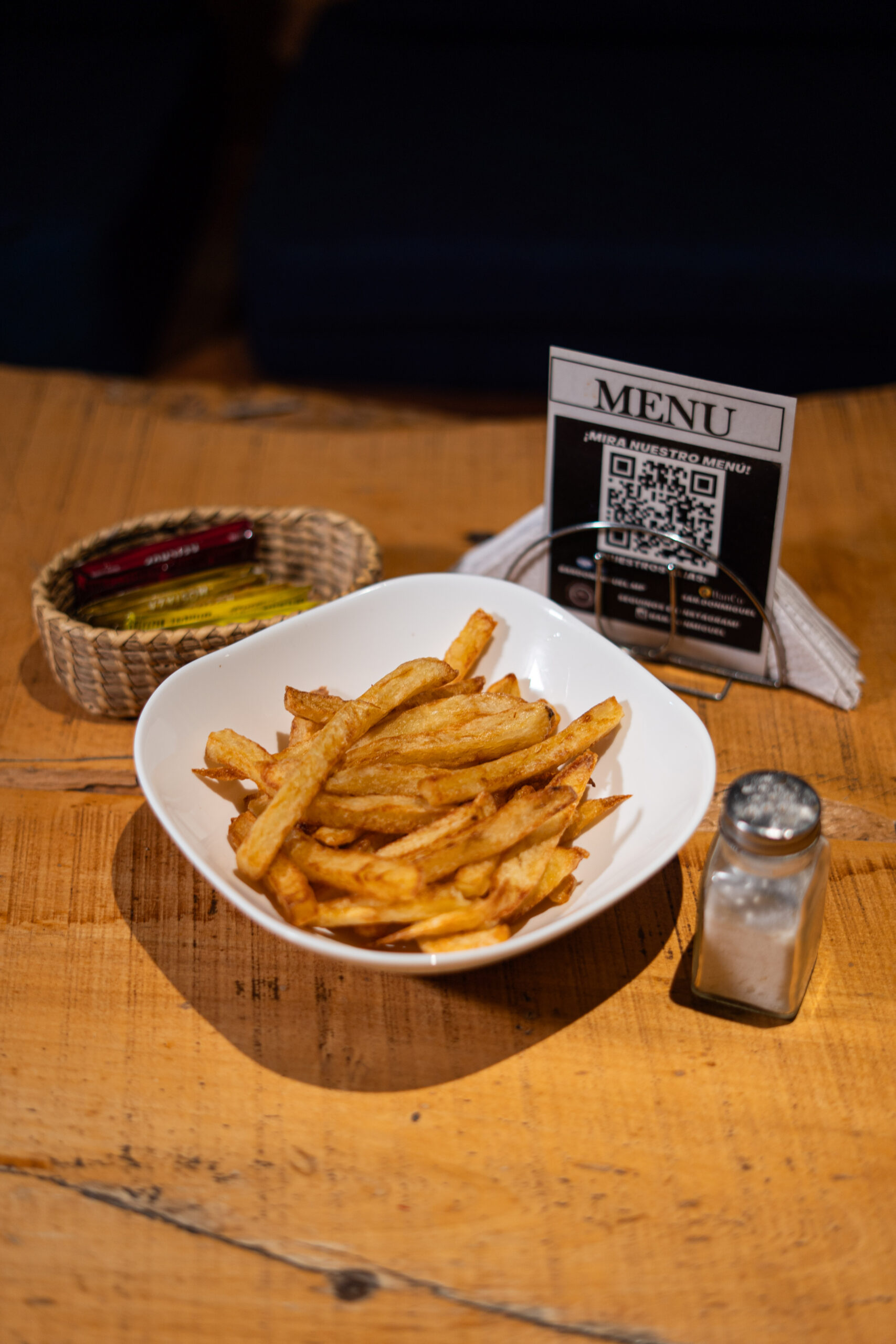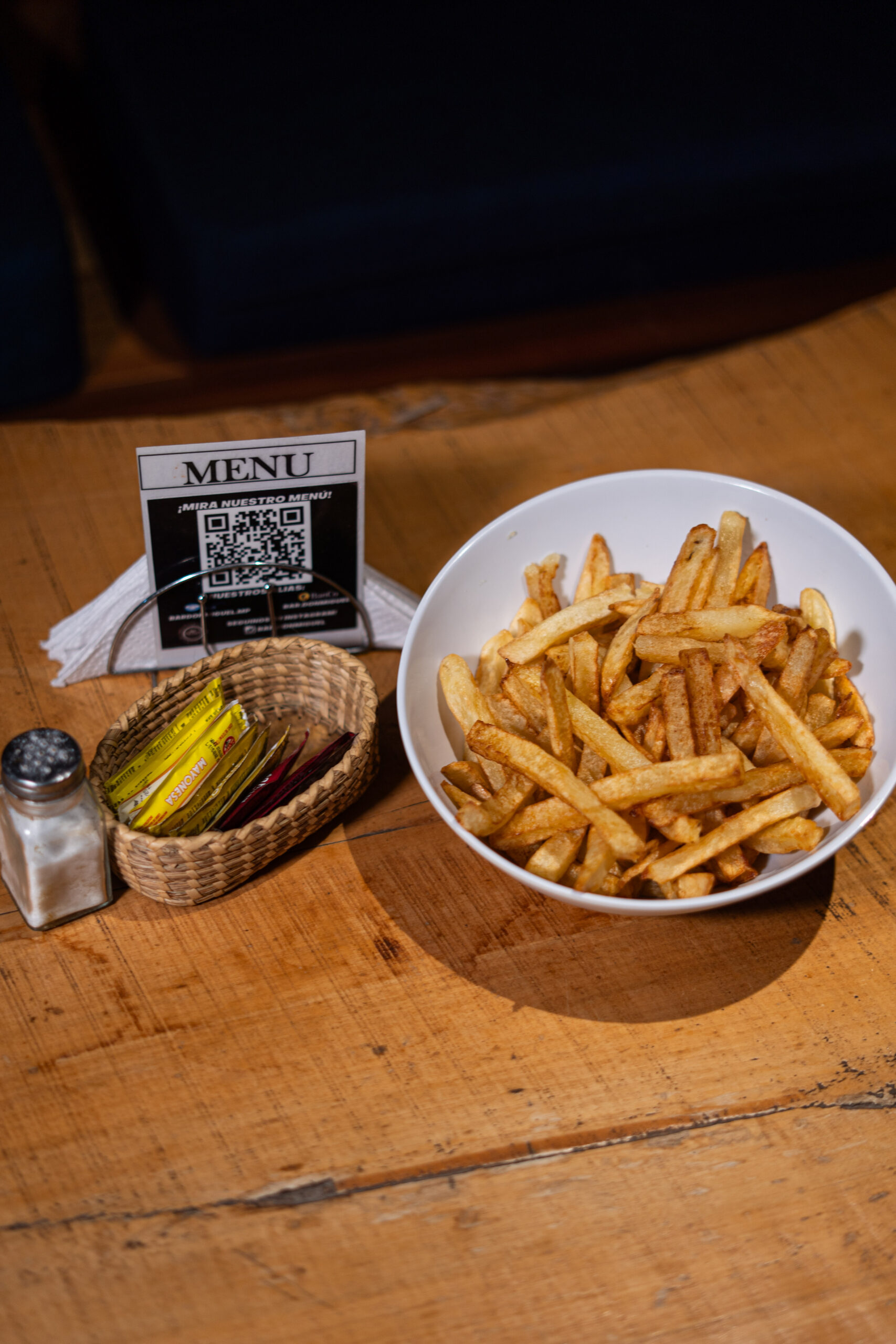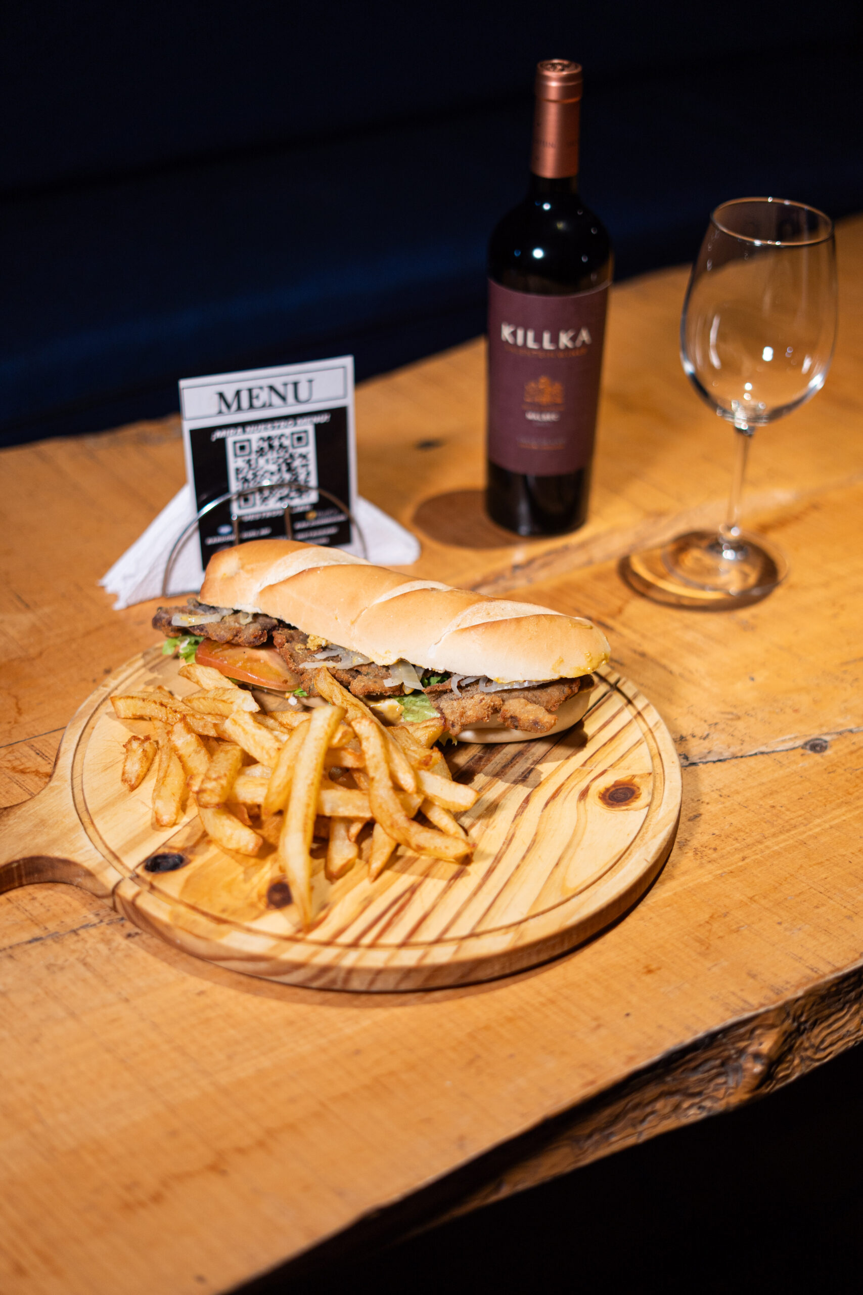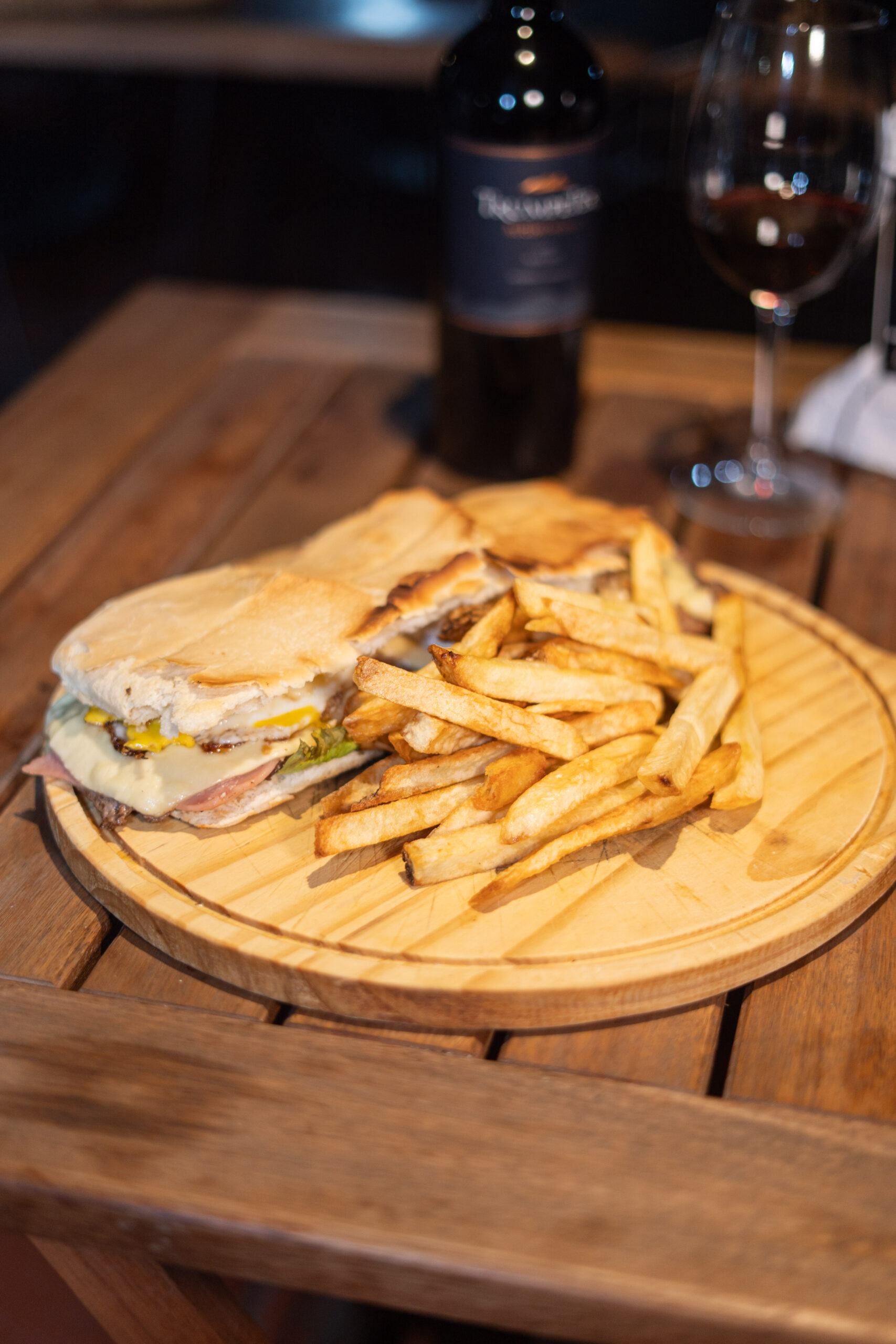 ( Pan brioche, doble carne, doble cheddar, cebolla, mayochimi, papas fritas )